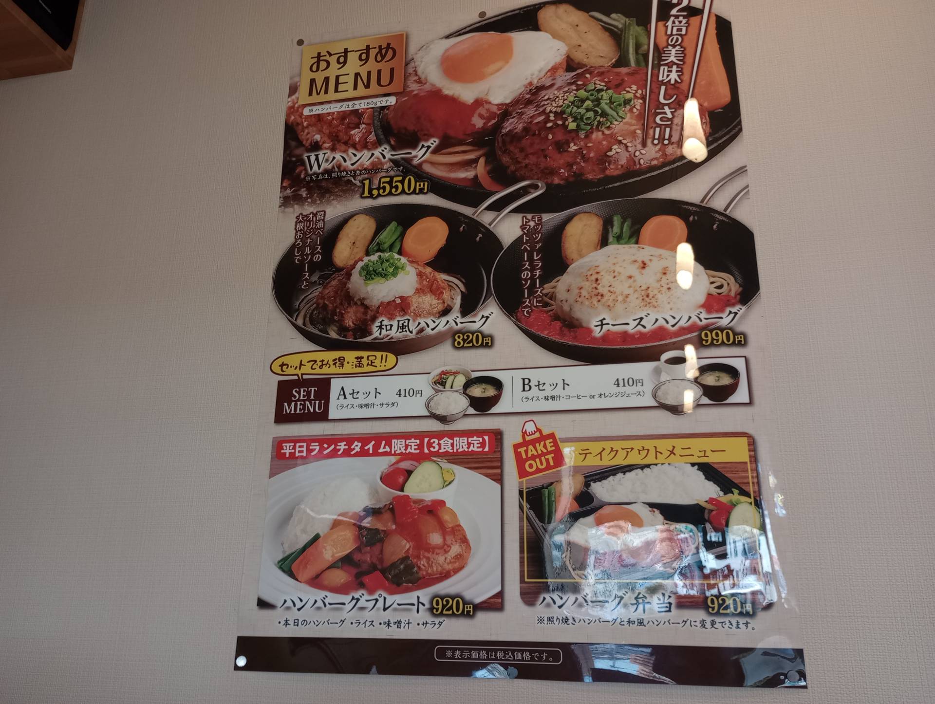 料金:ハンバーグプレート(平日3食限定)920円(詳細は画像で確認)
